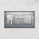 cool metallic dentist dental office business card. a metal background with the text dentist and a big teeth or tooth in front.See our store for dental practice gifts and apparel for the dentist, dental hygienist and dental assistant. Find hilariously funny dentist humour mugs, aprons and tshirts! Plus, we also carry dental humour magnets and buttons to wear, display or give away!