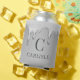 Modern Dripping Metallic Chrome Monogram Monogram Can Cooler with liquid chrome dripping on a silver metallic background with your custom monogram and name. Please contact us at cedarandstring@gmail.com if you need assistance with the design or matching products.