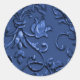 Metallic Embossed Look Damask in Blue Classic Round Sticker