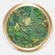 Metallic Embossed Look Damask in Green and Gold Classic Round Sticker