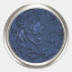 Metallic Embossed Look Damask in Navy Blue Classic Round Sticker