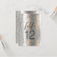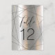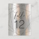 Set the perfect wedding table with these unique cards. The pieces in this modern wedding suite feature elegant hand-written script accents and a sleek metallic silver background overlaid with a delicate geometric pattern in basic black. The bride and groom's initials and wedding date and table numbers can be customised using the provided template. Search ID648 to see all the pieces in this elegant set.