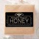 Elegant honey label with elaborate border and heraldic honeybee. Personalize with your beekeeping business name, net weight and apiary location. Honey is written in an 'embossed' gold font. Vintage medieval illustration from UK of a honeybee in a metallic gold oval.