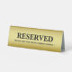 Elevate your establishment’s reserved seating with this Metallic Gold Background Reserved Table Tent Sign, a luxurious and eye-catching solution for clearly designating reserved spaces at events, in restaurants, cafes, or for special occasions like weddings. With a radiant metallic gold background, this sign adds an elegant, upscale touch to any table or seating area, making it perfect for both everyday use and special events where a sophisticated aesthetic is desired. The gold background reflects a sleek, modern look, effortlessly catching light to draw attention without overpowering your decor, making it an ideal match for high-end dining experiences, formal gatherings, and celebratory occasions.