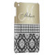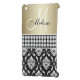 SOPHISTICATED, STYLISH, METALLIC GOLD EFFECT, BLACK AND WHITE DAMASK PATTERN YOU CAN PERSONALIZE WITH YOUR NAME AND YOUR MONOGRAM OR YOUR TEXT. ELKE CLARKE© A PHOTO OF A BAND OF DIAMONDS ARE PRINTED. A GREAT GIFT FOR HER.