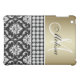 METALLIC GOLD BLACK DAMASK PATTERN MONOGRAM iPad MINI CASE