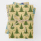 Metallic Gold Christmas Trees Green Blue Glitter Wrapping Paper Sheet