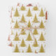Metallic Gold Christmas Trees Pattern Glitter Wrapping Paper Sheet