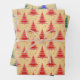 Metallic Gold Christmas Trees Pattern Glitter Wrapping Paper Sheet