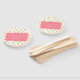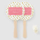 Metallic gold confetti with pink birthday party hand fan. The design features a metallic gold on white confetti pattern and a pink shape in the middle with your custom text.