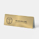 This slick design features a black law office logo on a metallic gold background and customisable text in black.