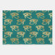 Metallic Gold Egyptian Eye on Green Wrapping Paper Sheet