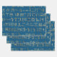 Metallic Gold Egyptian Hieroglyphs on Blue Wrapping Paper Sheet
