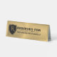 This slick design features a black family crest with a custom monogram on a metallic gold background with a custom BLACK logo-RESERVED FOR- a tent sign.