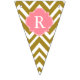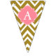 Metallic gold and white chevron pattern with pink accent baby shower bunting flag. The design features a metallic gold and white chevron pattern and a pink quatrefoil with your baby shower text.