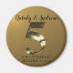 Celebrating 5 years together. Happy 5th wedding anniversary. Golden metallic label...