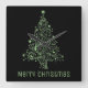 Metallic Green Stars Christmas Tree Elegant Black Square Wall Clock