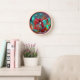 Metallic magnolia in blue and red with numbers clock