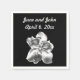 This photo of a Southern Magnolia done in chrome for a daring touch on a classic flower. Here it appears on a dramatic and more formal paper napkin that comes in different styles and sizes. You can easily change any text, as well as the background colour, to suit your theme. This magnolia appears on other fully customisable products.