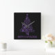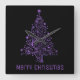 Metallic Purple Stars Christmas Tree Elegant Black Square Wall Clock