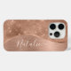 Easily personalize this rose gold brushed metal and glamorous faux glitter patterned phone case with your own custom name.