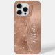 Easily personalize this rose gold brushed metal and glamorous faux glitter patterned phone case with your own custom name.