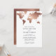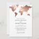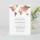 Metallic rose gold effect world map wedding invitation card. With a beautiful classic copper rose / gold world map. Ideal for foreign location weddings or travel lovers.