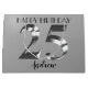 Happy 25th birthday. 25 years. Silver metallic label.
