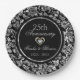 Metallic Silver And Black Damask 25th Anniversary Paper Plate