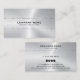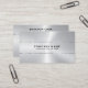 Create your own business card with our design featuring an image of a metallic silver stainless steel texture with a shiny silver stripe as a design element, with customisable black typography.