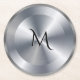 Metallic silver texture personalized monogram round paper coaster
