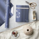 A festive pattern of large white swirls, snowflakes and stars scattered over a metallic teal background, to add an elegant touch to your Christmas gift wrapping these holidays.