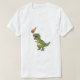 A dynamic cartoon illustration of a green dinosaur standing upright with its mouth wide open, eyes focused on a fiery meteor falling from the sky. Bold outlines, expressive features, and playful proportions turn a dramatic moment into a fun, humorous scene. The contrast between the bright flames and the deep black background makes the character feel lively, energetic, and full of comic-style action.