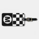 black and white retro city style monogrammed luggage tag with leather strap