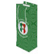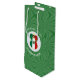 Personalised wine gift bag with an angel wearing the flag of Mexico for holiday gift decorating or Christmas decor. The Mexican Flag Christmas angel is found inside a white circular fractal of squiggly squares. The background is a green fractal of squiggly squares. Add your own text or personalise with a name and the year.