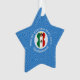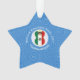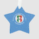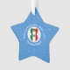 An angel flies wearing the flag of Mexico for Hanukkah. She flies in a white circle of squiggly squares on a background of blue squiggly squares. Customise by adding the year you want to make this special. Personalise with your name, or someone else's name if giving was a gift. Star ornament designed to add joy to your Hanukkah decor this holiday season.