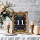 Mexican Black Floral Colourful Botanical Wedding Table Number