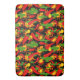 Hot and spicy bath mat printed with a bold pattern of red chilli peppers, cacti, and roaring flames.