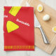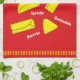 Awesome red kitchen towel with well-known Mexican cooking names and illustrations.
