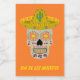 This awesome set of food container labels features a graphic design image of a Mexican Day of the Dead (Dia de los Muertos) inspired skull. The skull is a pale grey colour and is wearing a yellow sombrero. It has gold teeth and Mexican Sunflowers, also called Tithonias< instead of eyes. The sombrero has a cactus on it and is covered in pretty swirl patterns and red and green Chilli peppers. The skull itself is covered in pretty coloured flowers of different types.