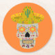 This awesome paper coaster features a graphic design image of a Mexican Day of the Dead (Dia de los Muertos) inspired skull. The skull is a pale grey colour and is wearing a yellow sombrero. It has gold teeth and Mexican Sunflowers, also called Tithonias< instead of eyes. The sombrero has a cactus on it and is covered in pretty swirl patterns and red and green Chilli peppers. The skull itself is covered in pretty coloured flowers of different types.