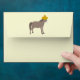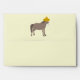 This envelope features a pale brown donkey with a dark brown mane and tail. The Donkey is ready to celebrate the Day of the Dead, Dia de los Muertos. The Donkey is wearing a sombrero covered in red and green stars, carrots, colourful swirls, cherries and red and green chillies. There is a flower with orange petals and a yellow centre in the middle of the hat, called a Tithonia, or Mexican sunflower.