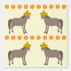 This awesome patterned wallpaper features a pale brown donkey with a dark brown mane and tail. The Donkey is ready to celebrate the Day of the Dead, Dia de los Muertos. The Donkey is wearing a sombrero covered in red and green stars, carrots, colourful swirls, cherries and red and green chillies. There is a flower with orange petals and a yellow centre in the middle of the hat, called a Tithonia, or Mexican sunflower. The Mexican sunflowers are also in lines between the rows of donkeys.