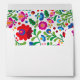 Perfect for a destination wedding invitation suite or just a Mexican themed celebration, this custom printed envelope features a pre-printed return address on the back flap and corner detail of flowers and foliage inspired by the colourful embroidery of native Mexican artisans.