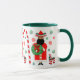 Funny feliz Navidad Christmas mug featuring cute Mexican Santa with pinata cartoon and holiday candy.