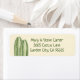 Mexican Fencepost cactus watercolor painting on a set of return address labels. Latin name pachycereus marginatus.