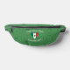 Fanny pack features a green fractal background of squiggly squares holding a heart shaped flag of Mexico. Above, personalise with a name. Below, add the occasion and year. Make Cinco de Mayo, birthdays, family reunions and other special events even more special. The flag is green, white, and red with an eagle in the centre.