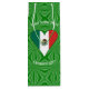A green fractal background of squiggly squares holds a heart shaped flag of Mexico. Above, personalise with a name. Below, add the occasion and year. Make Cinco de Mayo, birthdays, family reunions and other special events even more special with this wine gift bag. The flag is green, white, and red with an eagle in the centre.