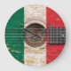 This unique design by artist Jeff Bartels features a close up of the sound hole and strings of an old acoustic guitar with the flag of Mexico painted on to the body. The six string guitar has an aged and worn feel and is covered with scratches and scuffs which gives it a beat up, well used look with lots of personality. This stylish design is perfect for guitarists, musicians and music lovers who want to show off their Mexican pride.