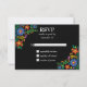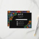 Colourful Mexican Fiesta RSVP card with folk art flowers against a dramatic black background (you can change the colour to suit your taste). Great for Mexico destination weddings, Cinco de Mayo weddings, or for someone who loves Mexican culture. Part of our Mexican Flowers collection.